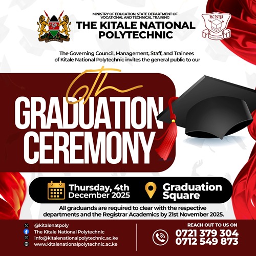 The Kitale National Polytechnic was established in 1980 as a public institute under the provisions of the Education Act(CAP211). It has grown to be the leading training institute in the region. It is located within Kitale Municipality along Elgon Rd, 1km from Kitale town.