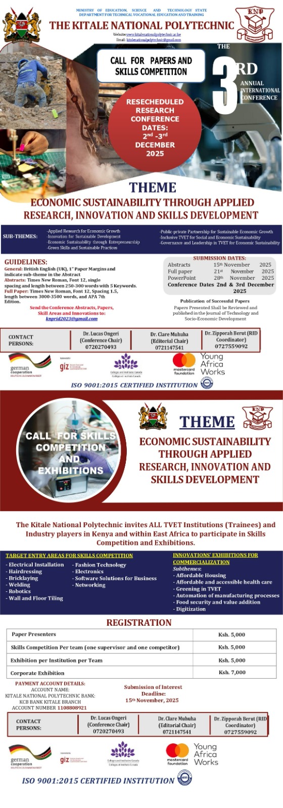 The Kitale National Polytechnic is an ISO 9001: 2015 Certified Institution.